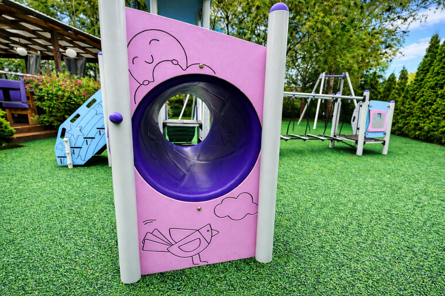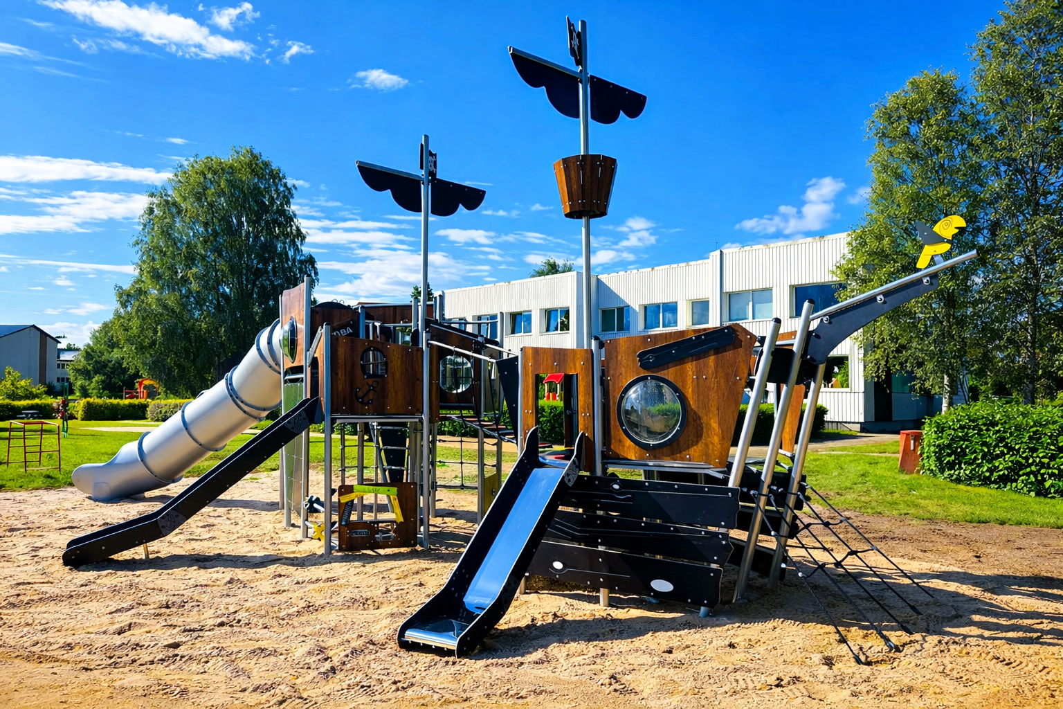 Meie mänguväljakud sobivad avalike mänguväljakute rajamiseks ja on ohutud lastele ning vastavad avalikele mänguväljakutele kehtivale standardile EVS-EN1176.
