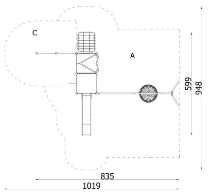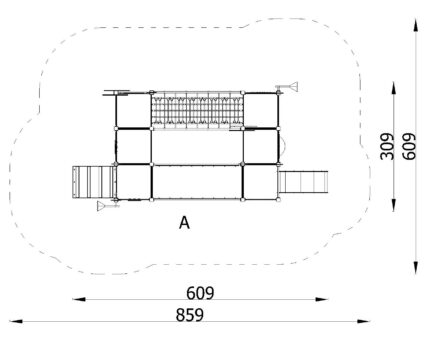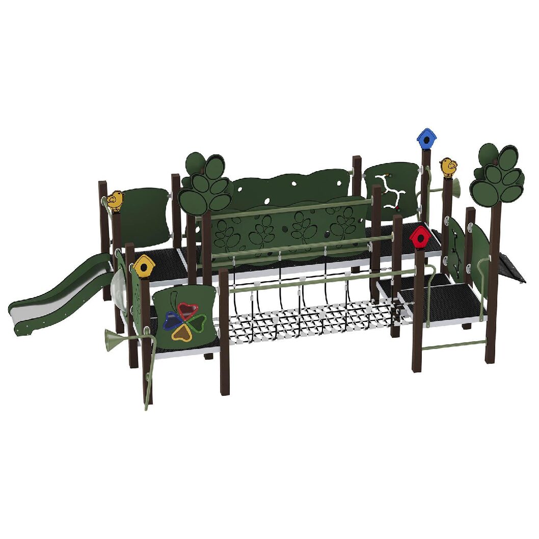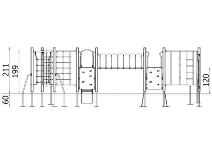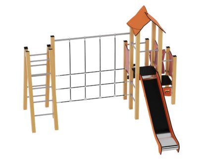 Mängulinnak kahe kangi ja pesakiigega