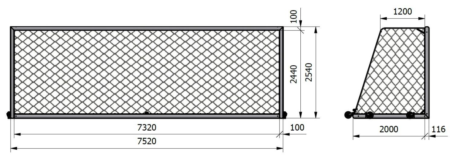 Mobiilne jalgpallivärav 7,32 x 2,44 m (ratastega)