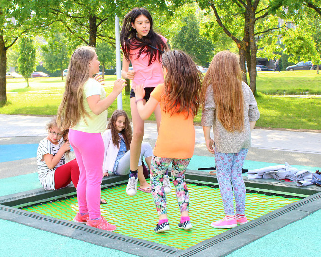 Maa sees asuv batuut on ohutu, ei nõua järelevalvet ning on vandaalikindel.
