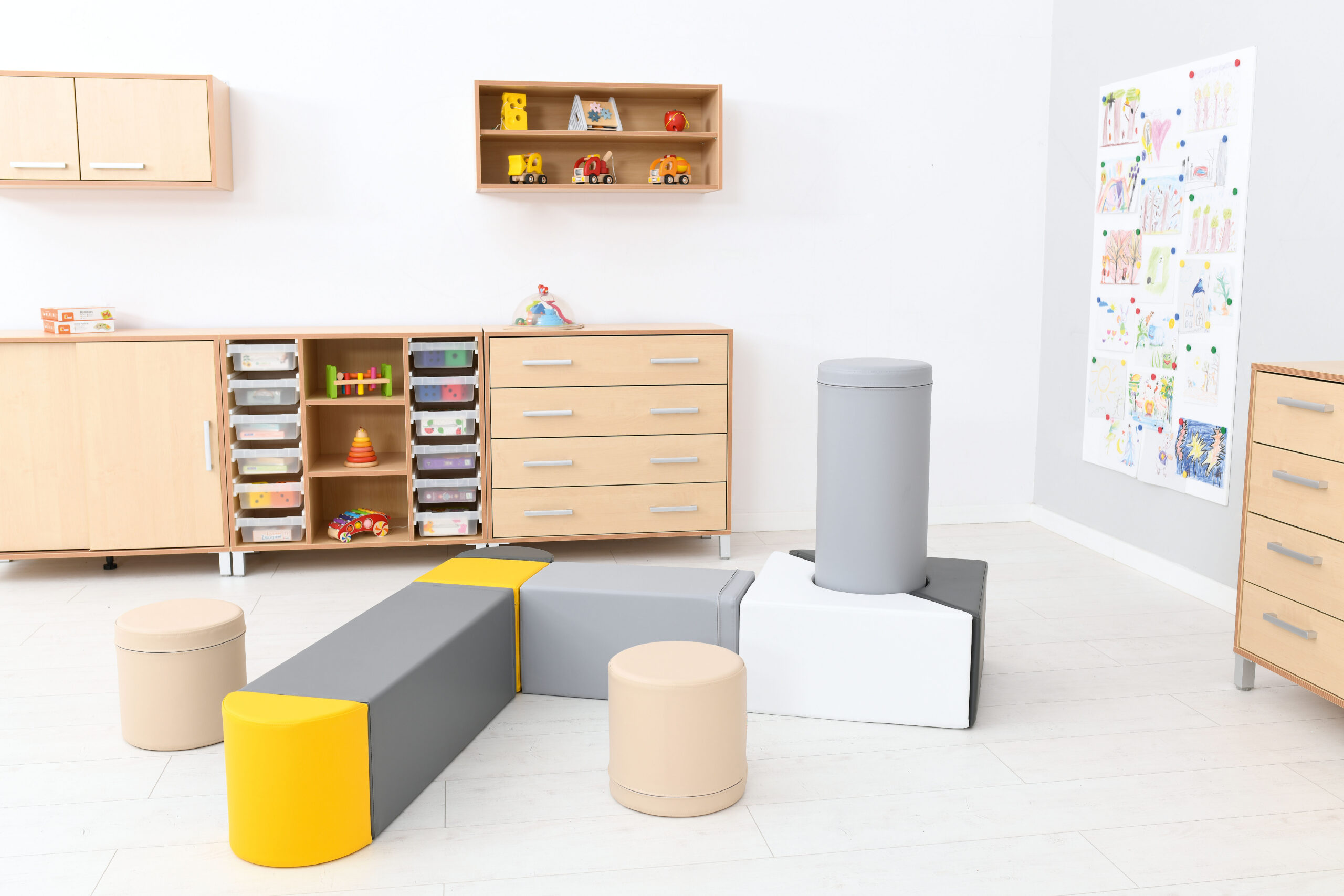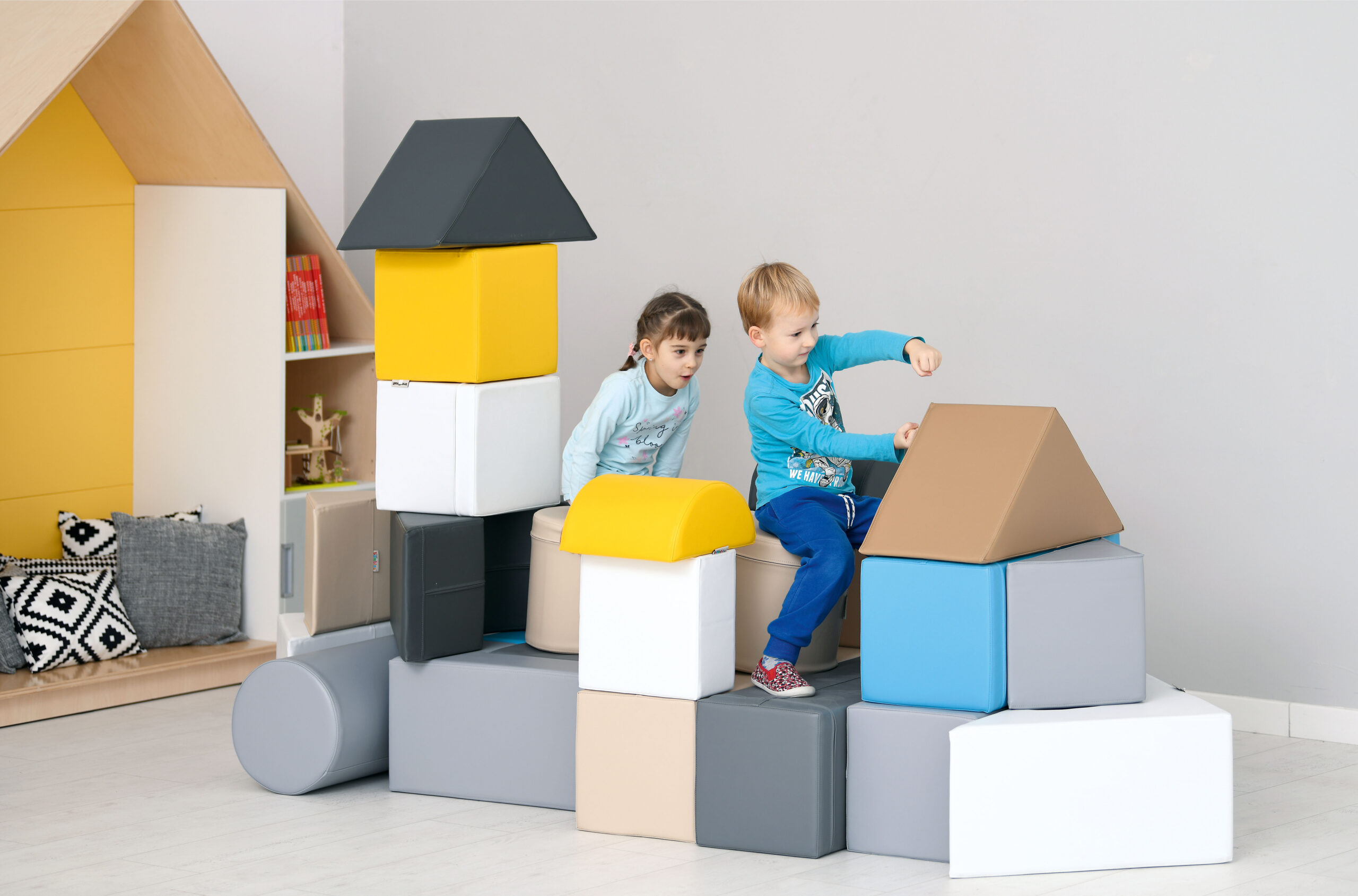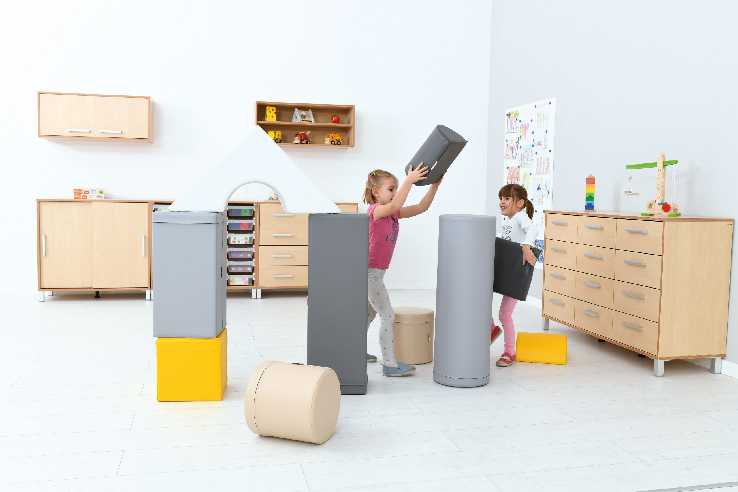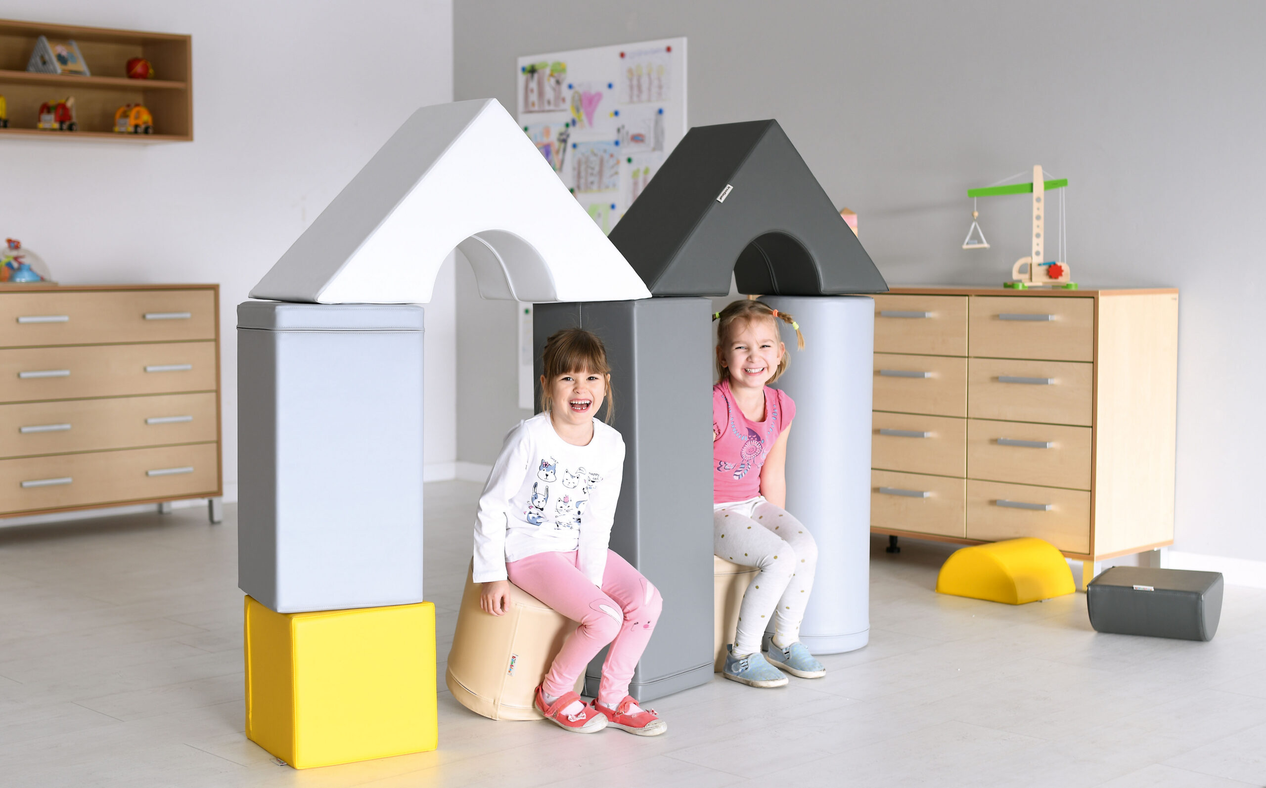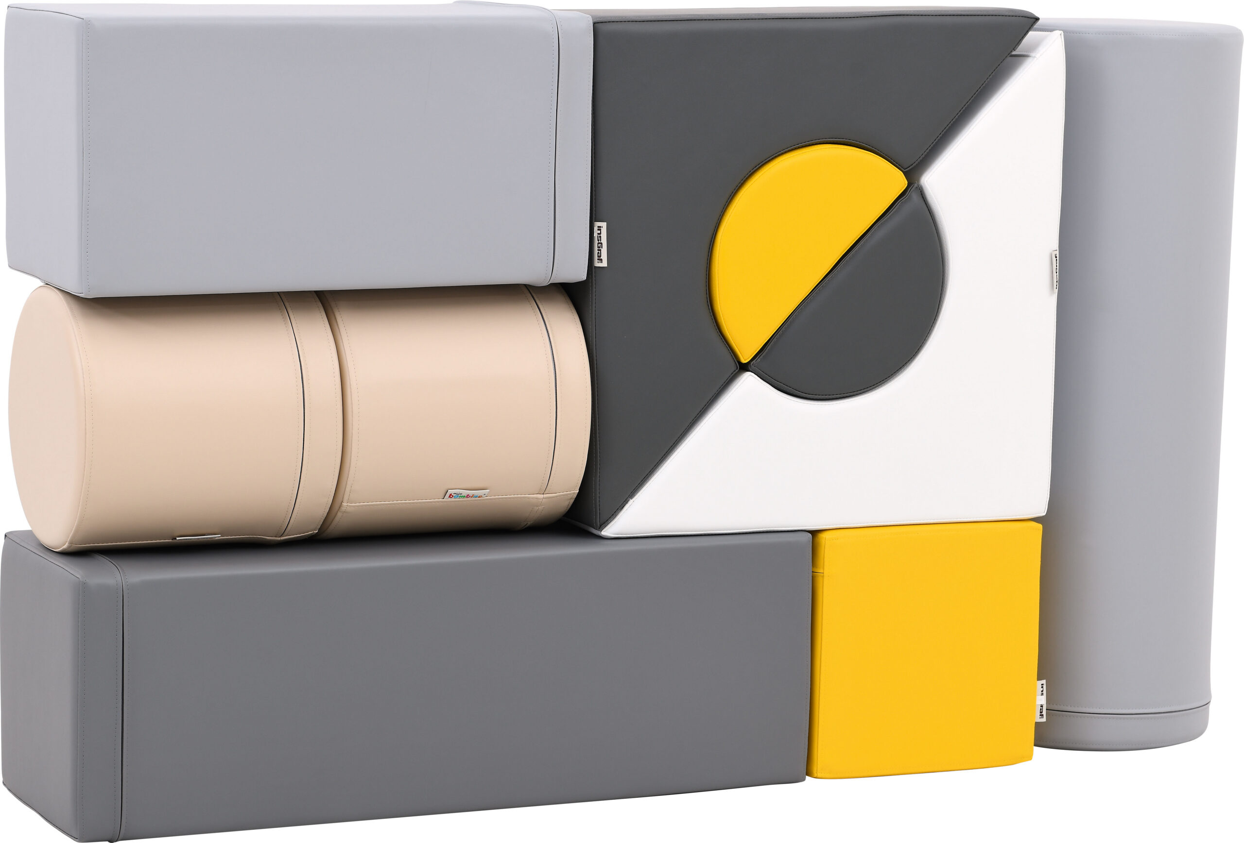 Vahtmaterjalist Mobaklockid, kaetud vastupidava ja pestava kangaga. Neid saab ühendada takistusradadeks ning kasutada ka ruumiliste konstruktsioonide loomiseks.