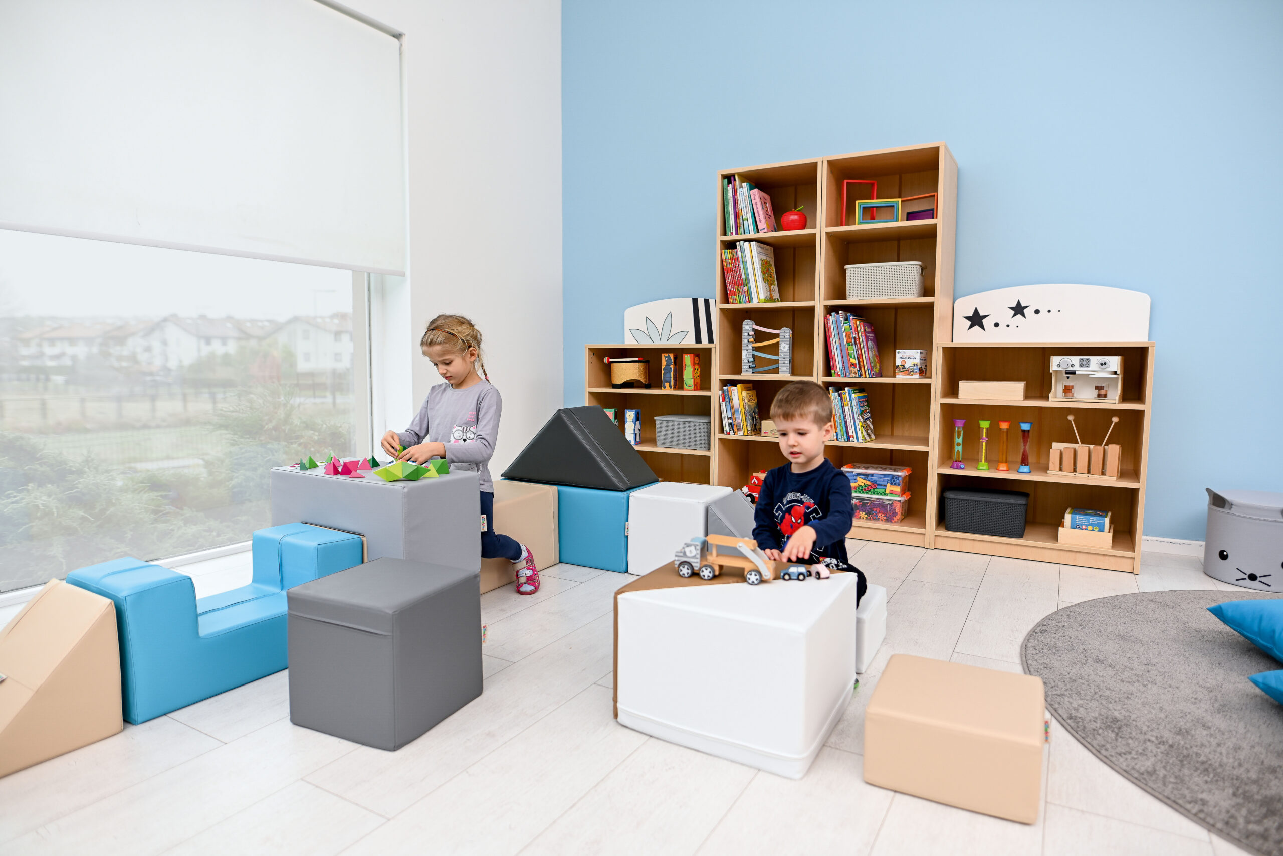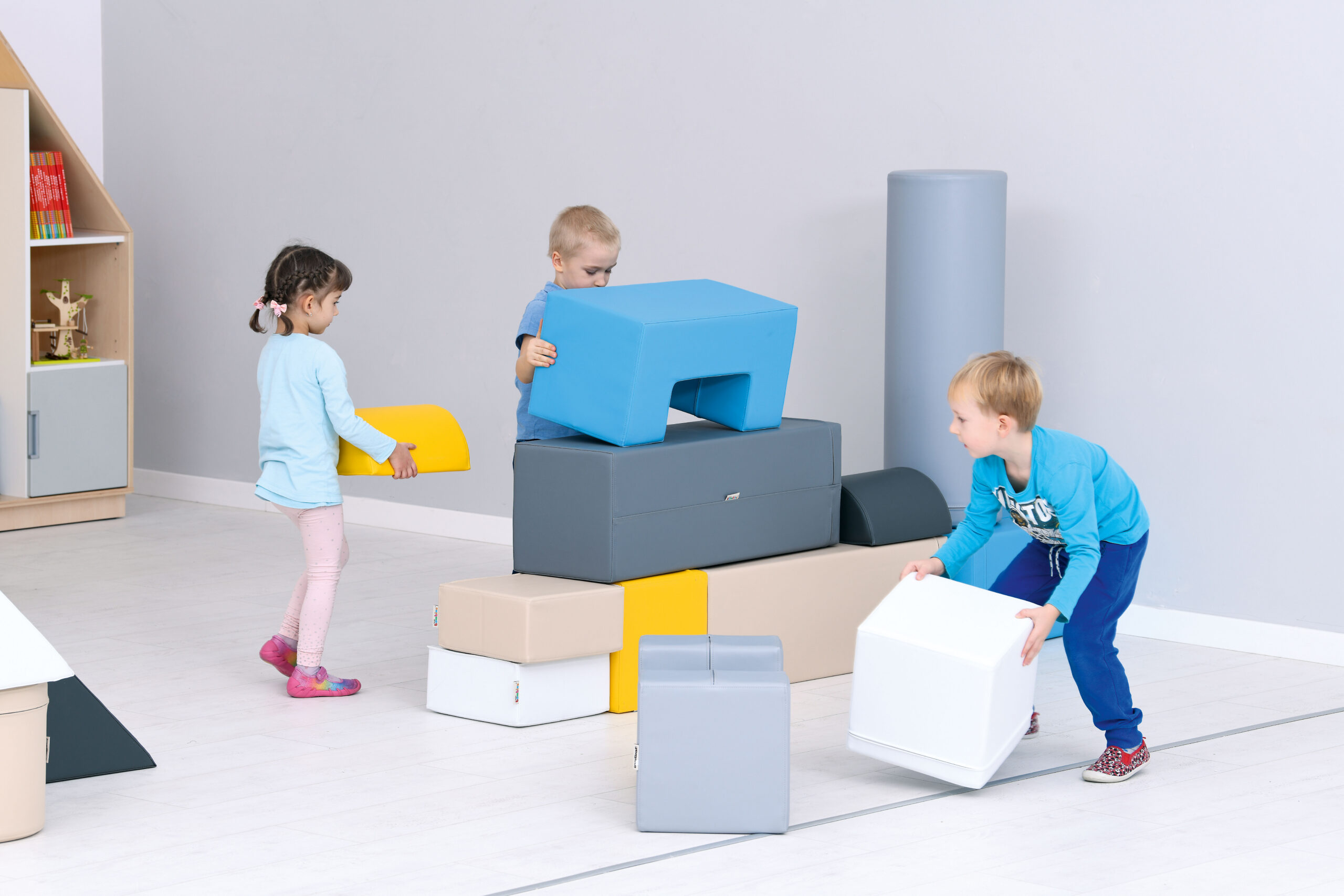 Vahtmaterjalist Mobaklockid, kaetud vastupidava ja pestava kangaga. Neid saab ühendada takistusradadeks ning kasutada ka ruumiliste konstruktsioonide loomiseks.