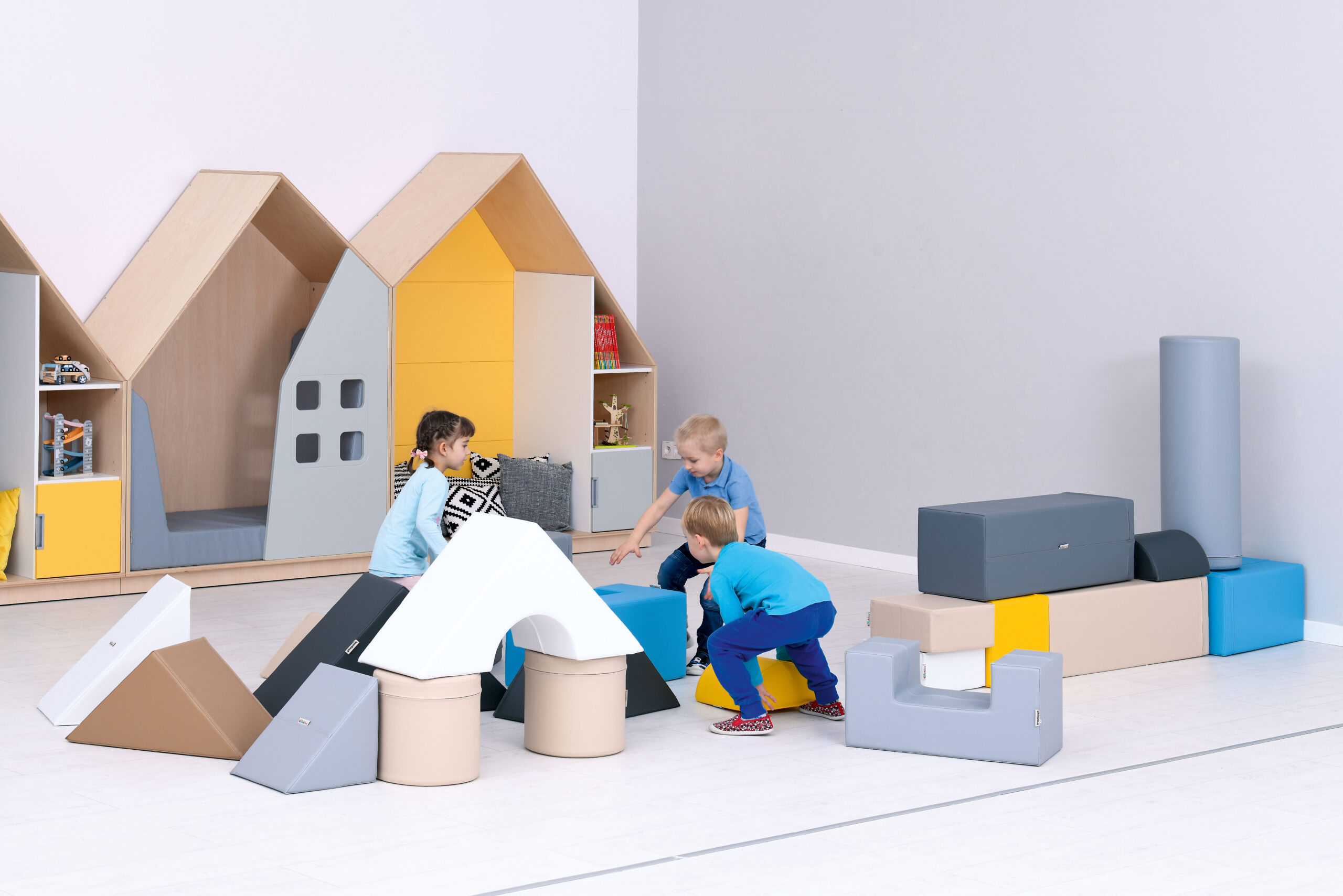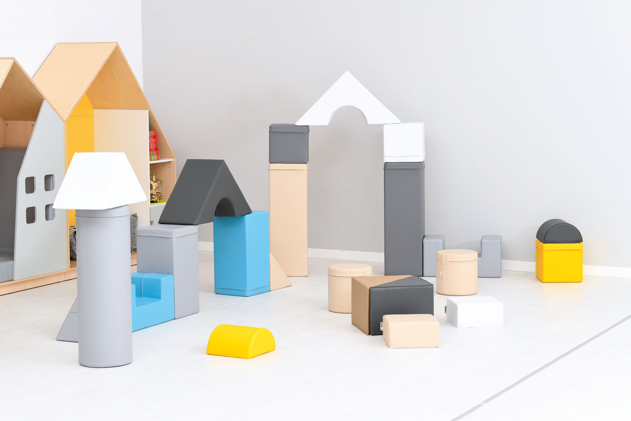 Vahtmaterjalist Mobaklockid, kaetud vastupidava ja pestava kangaga. Neid saab ühendada takistusradadeks ning kasutada ka ruumiliste konstruktsioonide loomiseks.