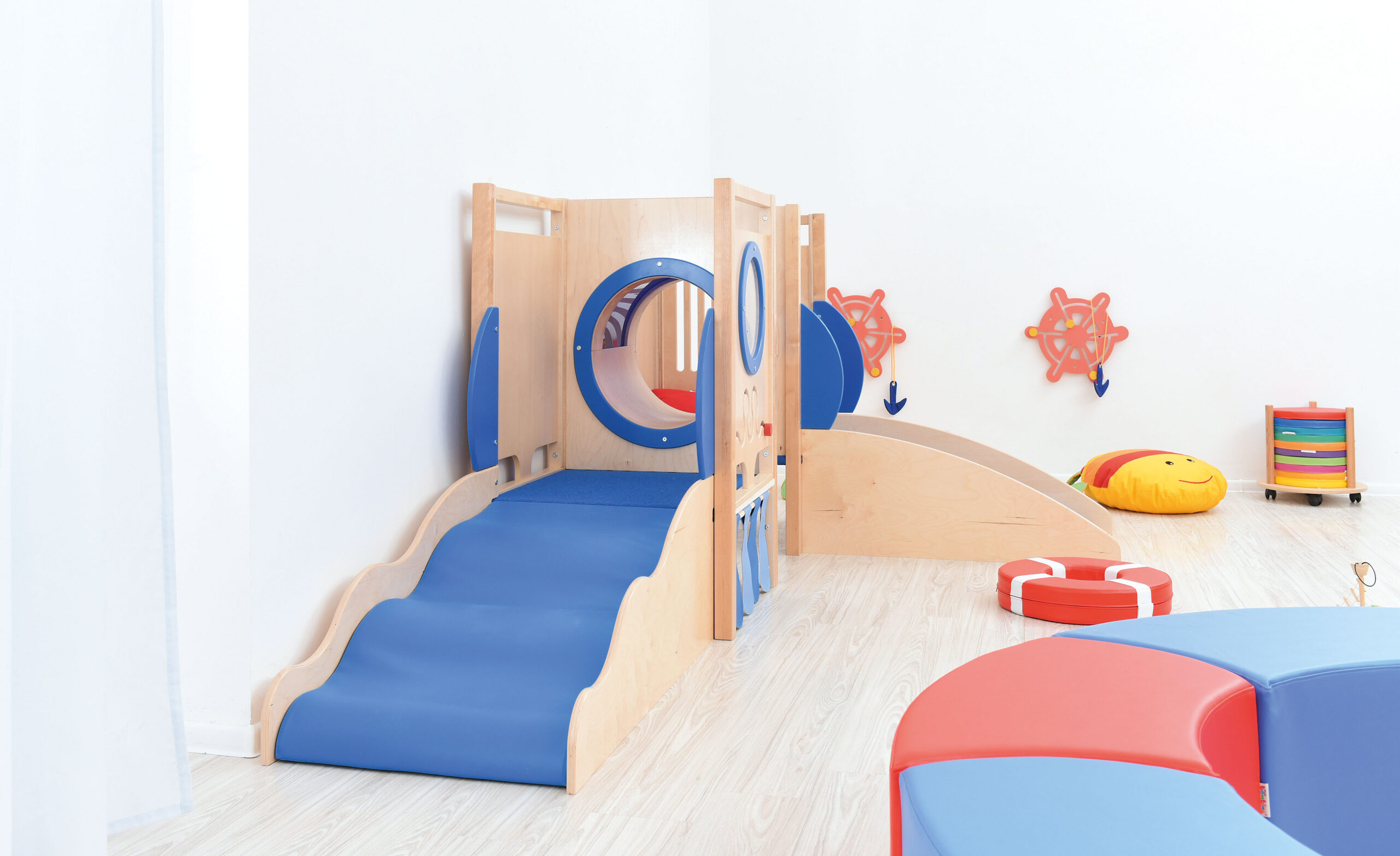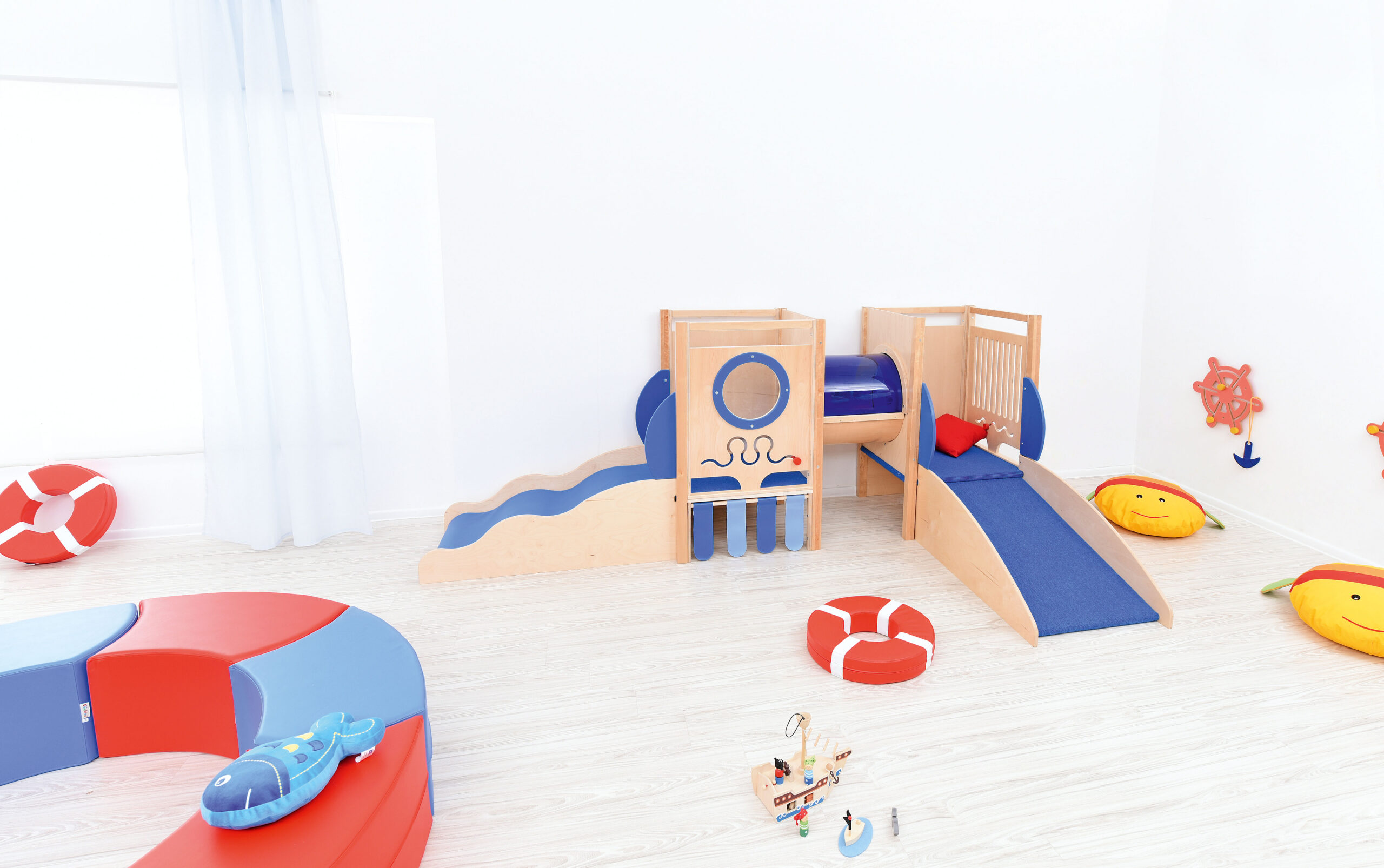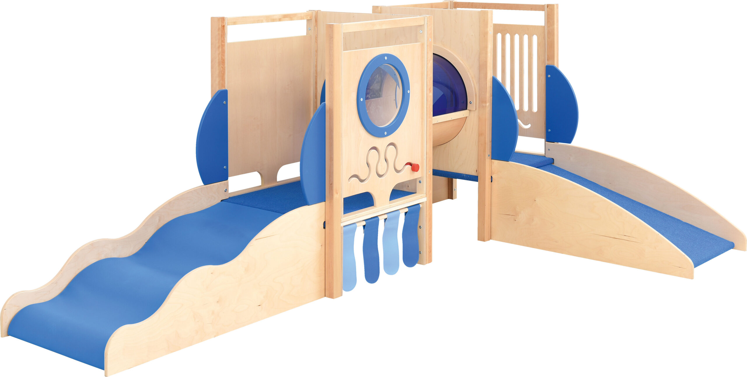 Sinise pleksiga kaetud tunneliga mängunurgake paneb iga lapse end tundma nagu päris allveelaevas. Valmistatud 18 mm paksusest lakitud vineerist, lamineeritud plaadist ja puidust. Nurgake on varustatud ka lainekujulisest madratsist „lainest“, millel lapsed saavad nii liugu lasta kui ka üles ronida, lükandmängudega, aknaga ning vaibakattega kaetud platvormidega. Liumäge ja kaldplatvormi saab paigaldada vaheldumisi.