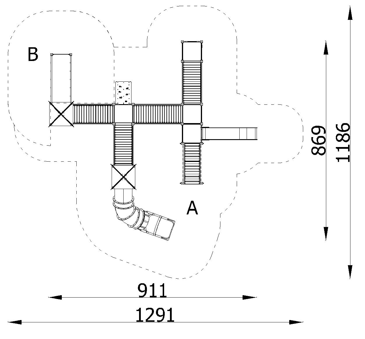 vaba tsoon: 12,91 x 11,86 m ehk 97 m²