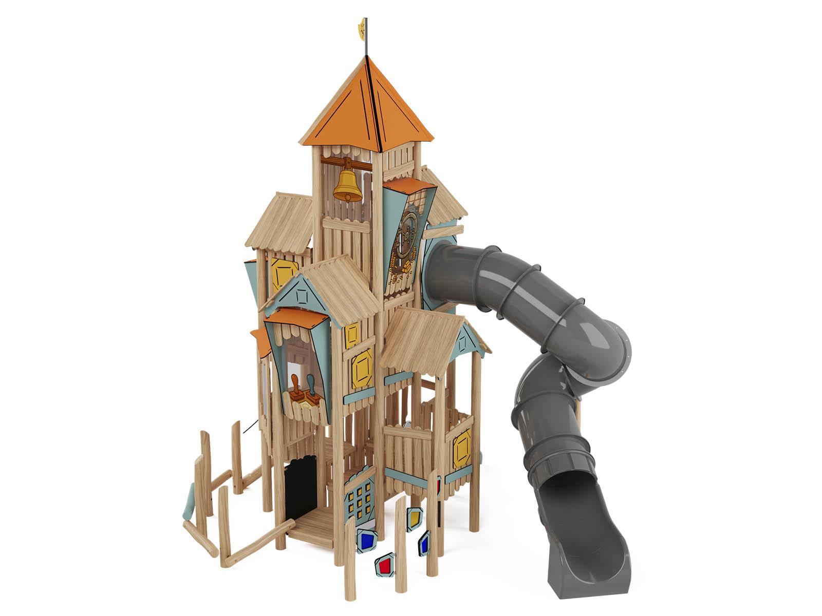 Monumentaalne rajatis, mis on tõeline kroonijuveel igal mänguväljakul. Robinio Town Hall ei ole lihtsalt mänguseade, vaid terve seikluskeskus, mis on loodud saama puhkeala südameks ja innustama kümneid lapsi loovalt koos mängima. Selle muljetavaldav mitmetasandiline konstruktsioon, mida kroonib lipuga torn, meenutab muinasjutulossi või vilgast raekoda ning sütitab laste kujutlusvõimet looma lõputult lugusid.