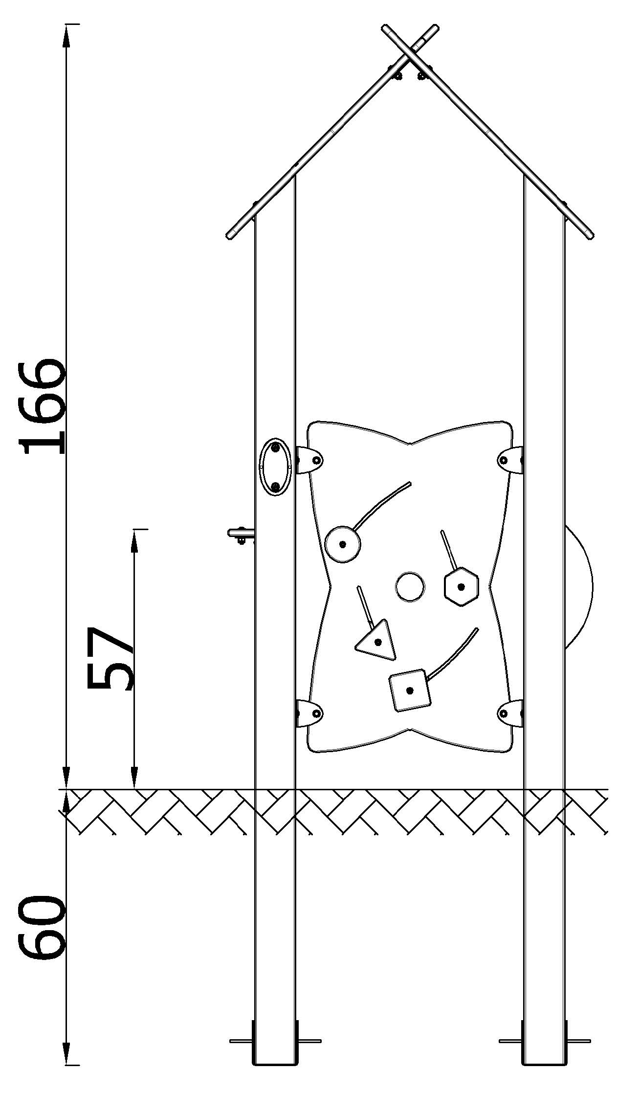 Kood: 60001MP-A materjal: liimpuit + HDPE mõõtmed: 0,81 x 0,85 m kõrgus: 1,66 m vaba tsoon: 3,85 x 3,81 m ehk 13 m² maksimaalne kukkumiskõrgus: 0,57 m