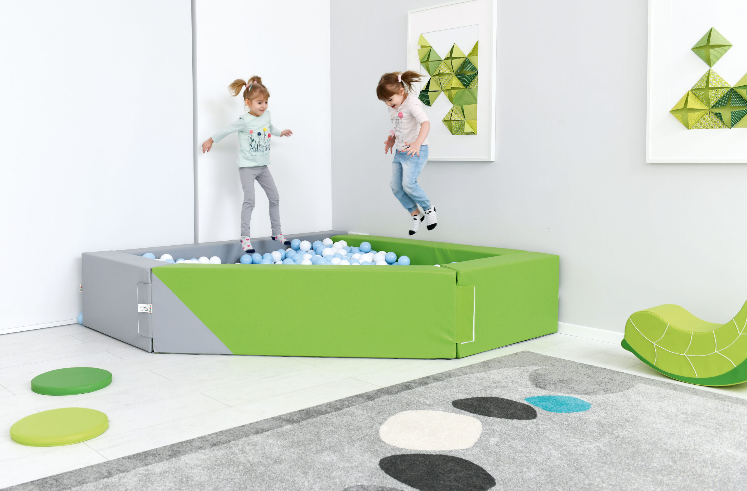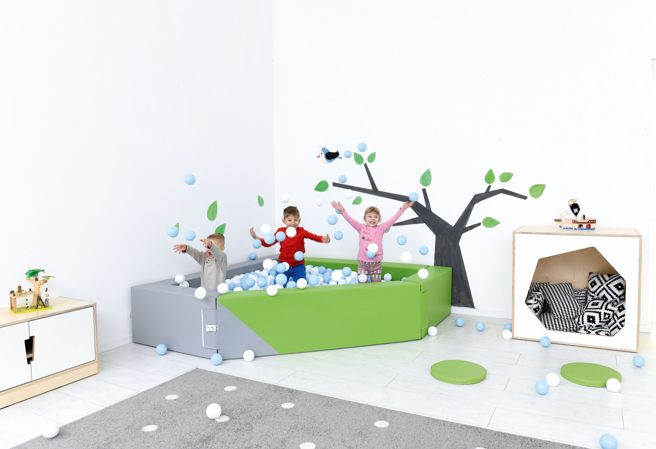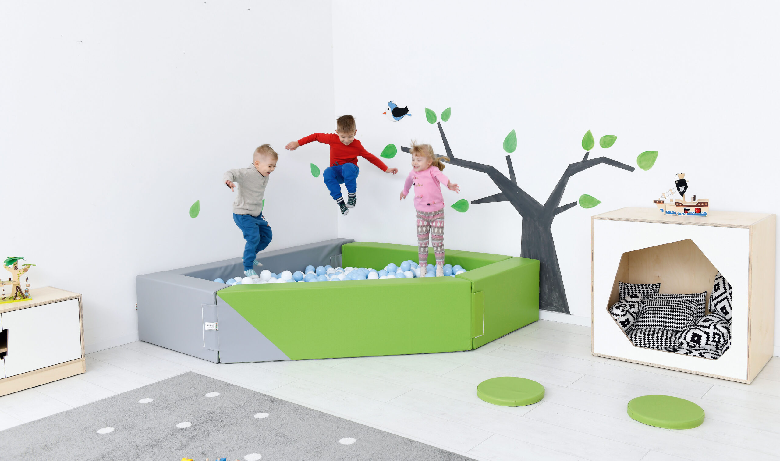 • põranda paksus: 40 mm • mõõdud: 200 × 200 cm • diagonaalse seina pikkus: 158 cm • kõrgus: 45 cm • 1500 palli läbimõõduga 8 cm on komplektis