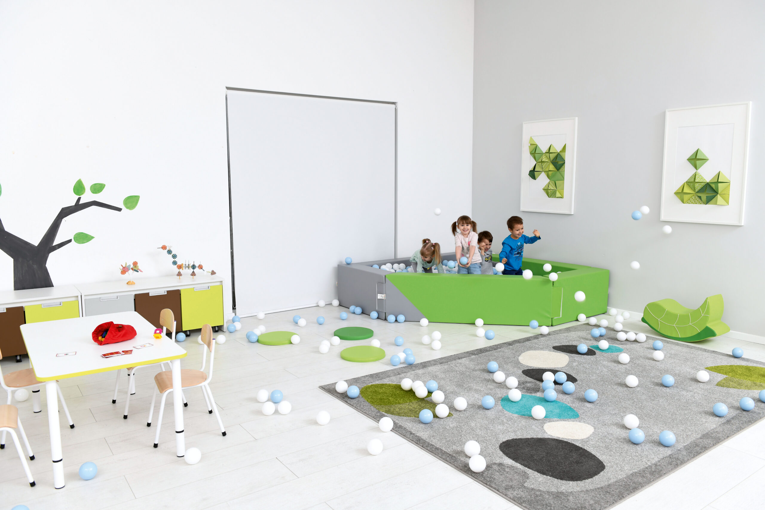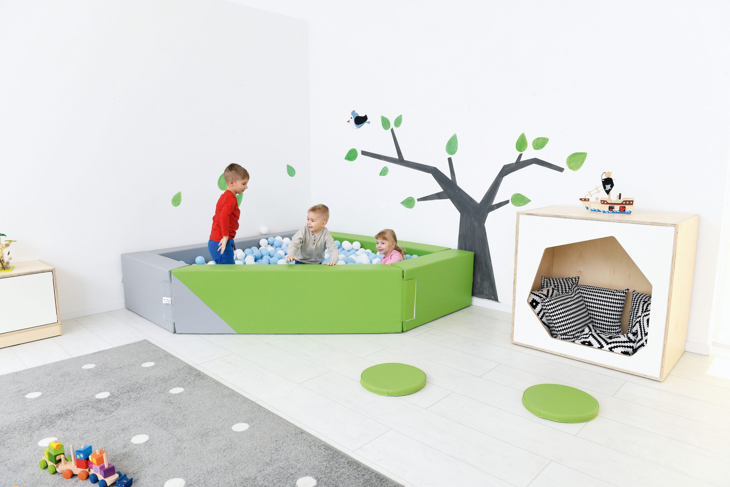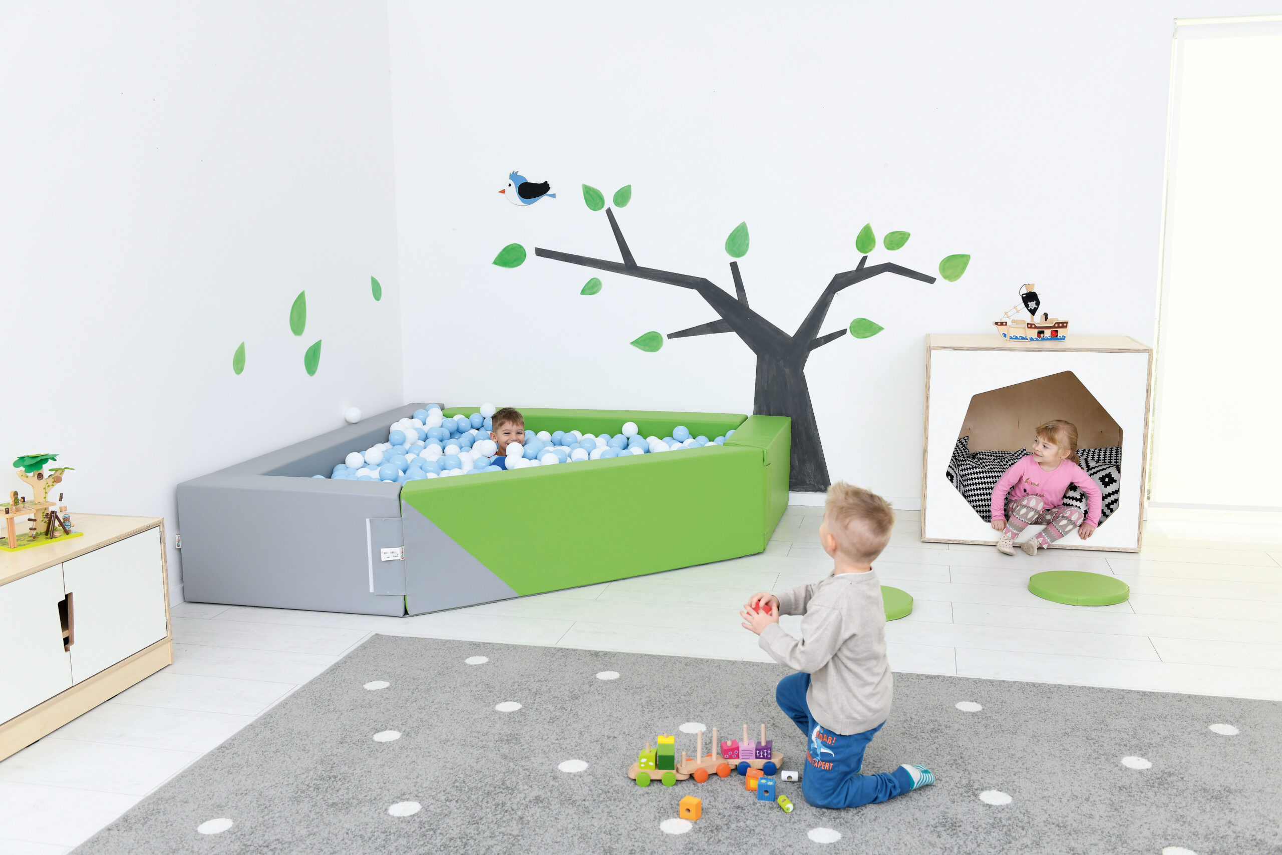 • põranda paksus: 40 mm • mõõdud: 200 × 200 cm • diagonaalse seina pikkus: 158 cm • kõrgus: 45 cm • 1500 palli läbimõõduga 8 cm on komplektis