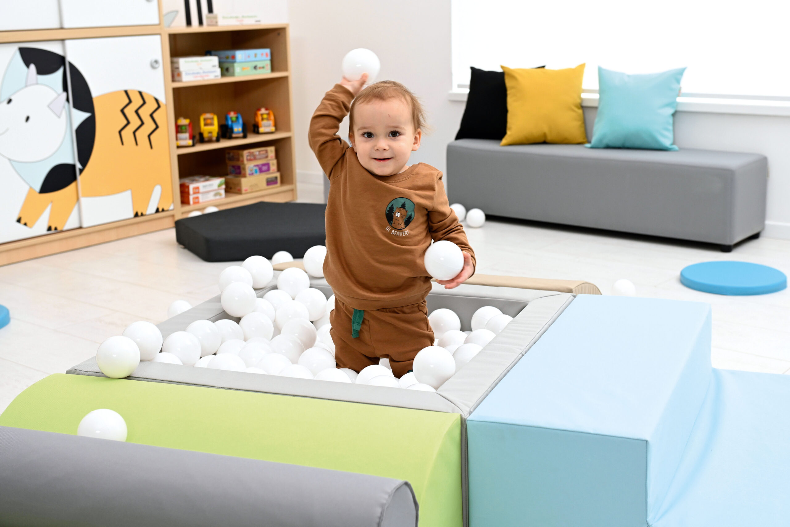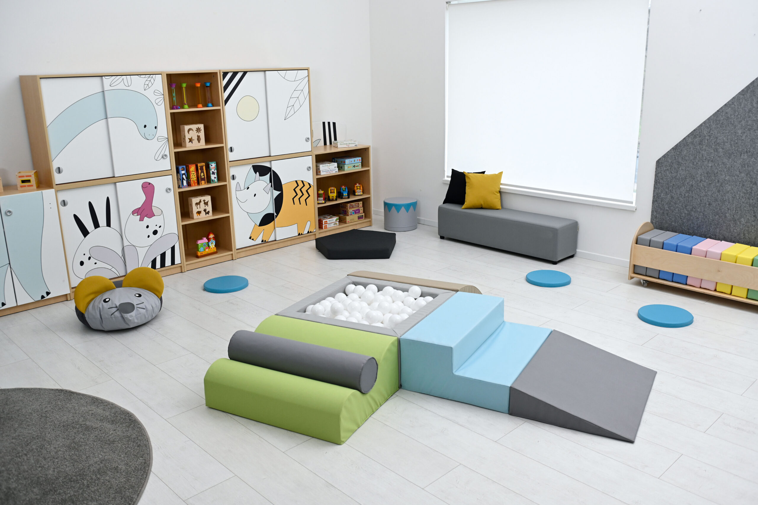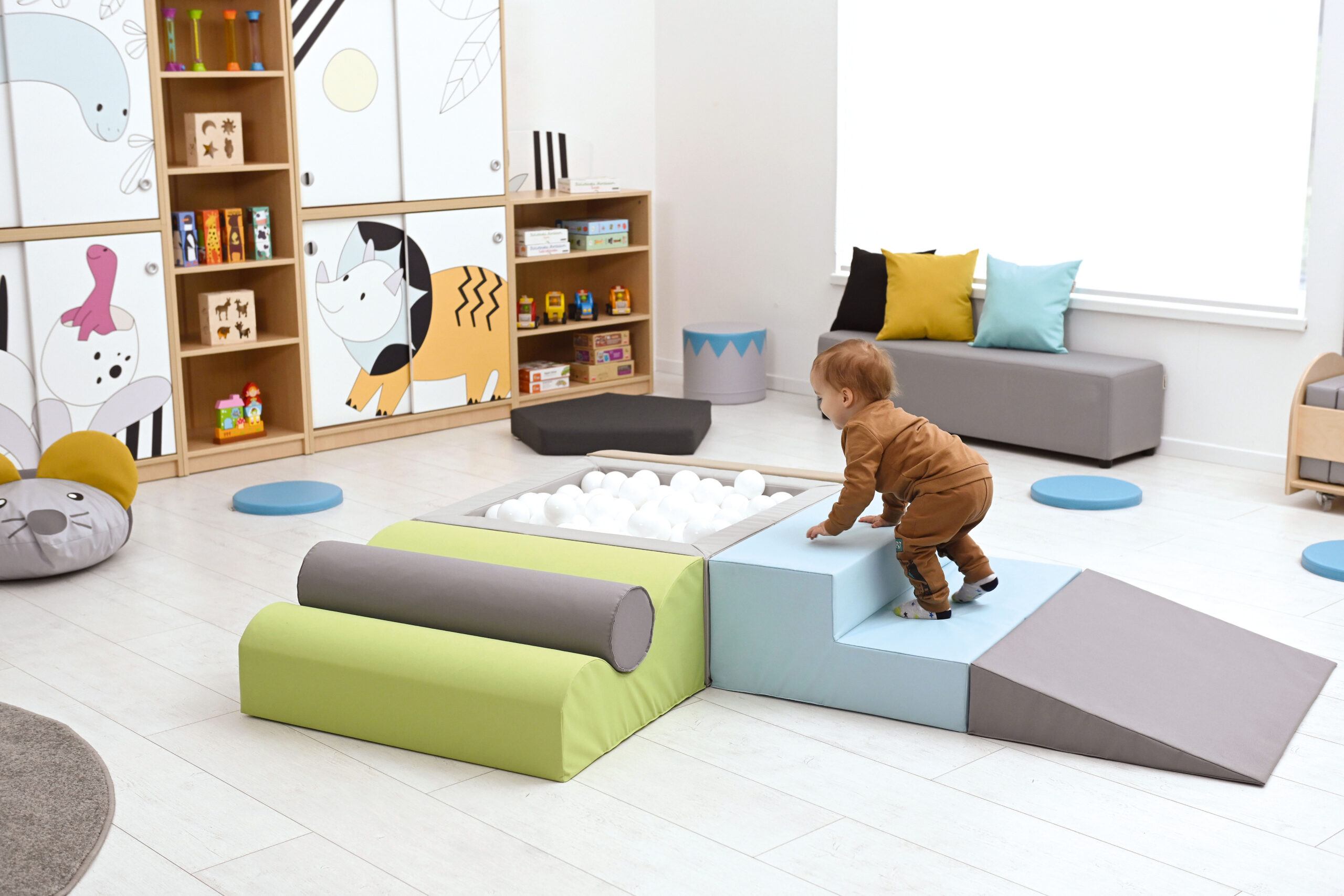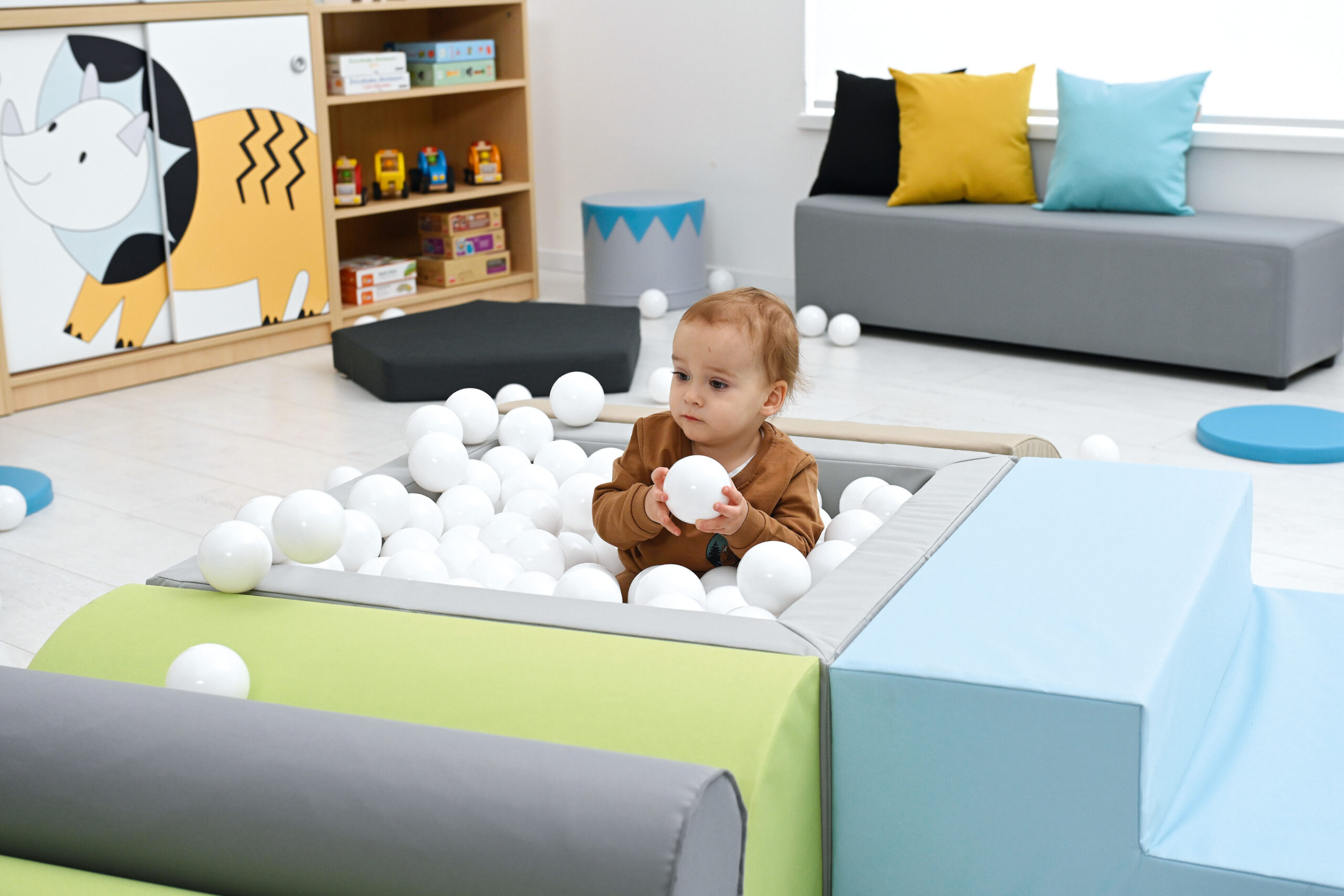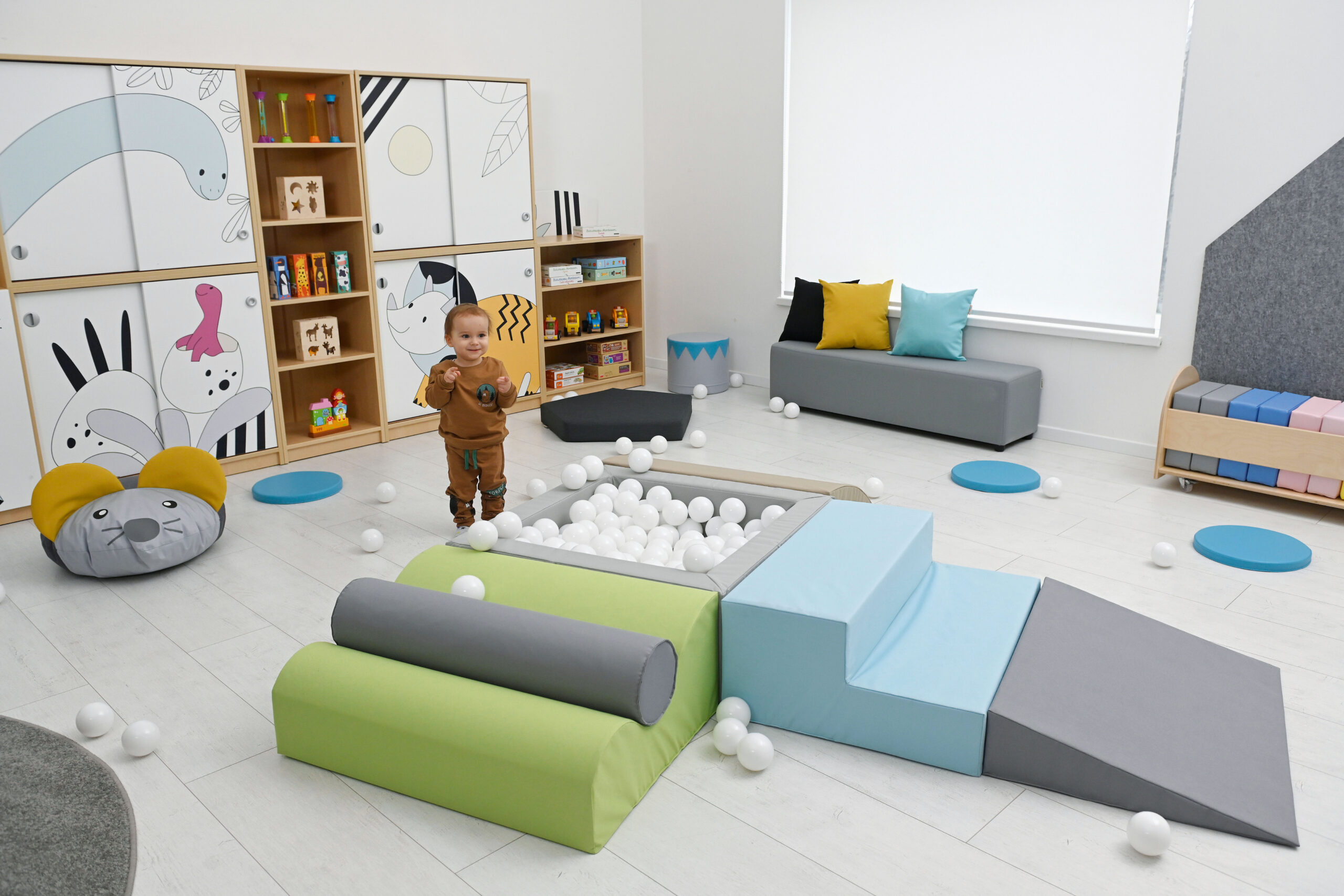 Pallidega bassein on väikelastele atraktiivne mängukoht. Komplekt sisaldab 3 vahtplastist sissepääsu basseini ning 250 hele sinist palli läbimõõduga 8 cm. Vahtplastist elemendid on kaetud vastupidava, kergesti puhastatava ja ftalaadivaba kangaga.